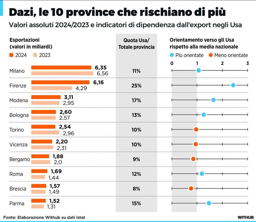 Dazi, le 10 province italiane che esportano di più negli Usa