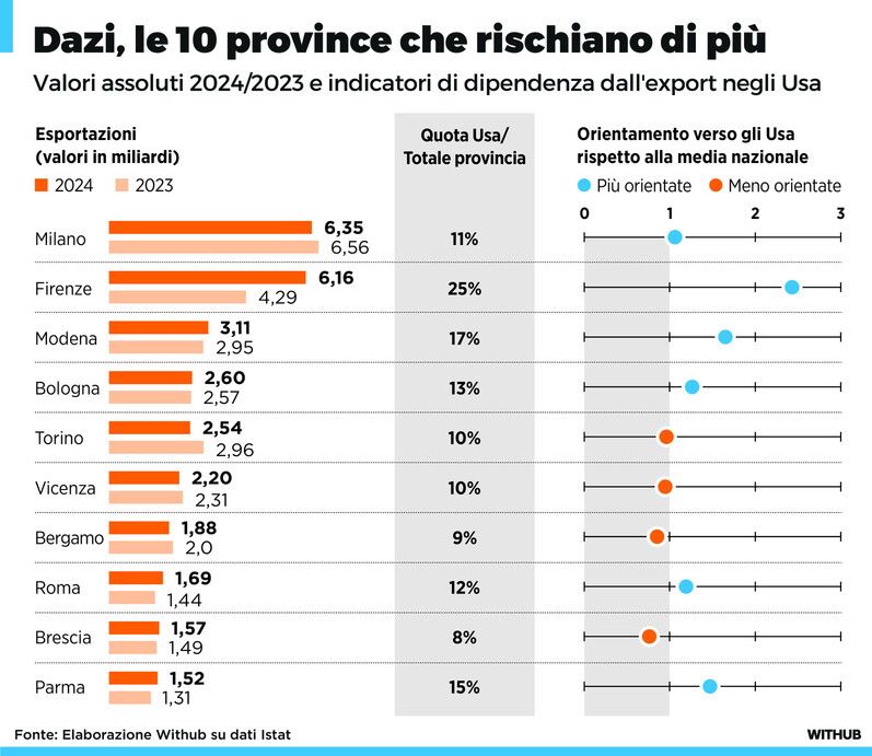 Italia e dazi, le 10 province che esportano di più negli Usa