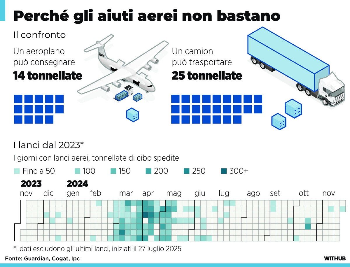 Gaza, perché gli aiuti lanciati dagli aeroplani non bastano