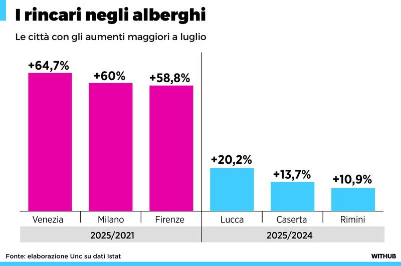 Turismo, ecco le città con i maggiori rincari negli alberghi