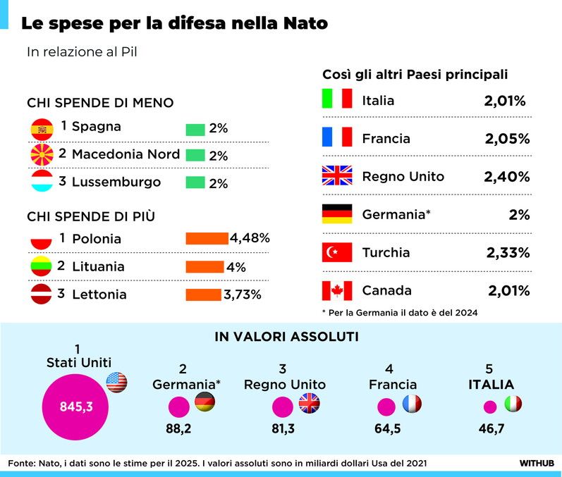 Le spese in difesa in rapporto al Pil dei Paesi Nato