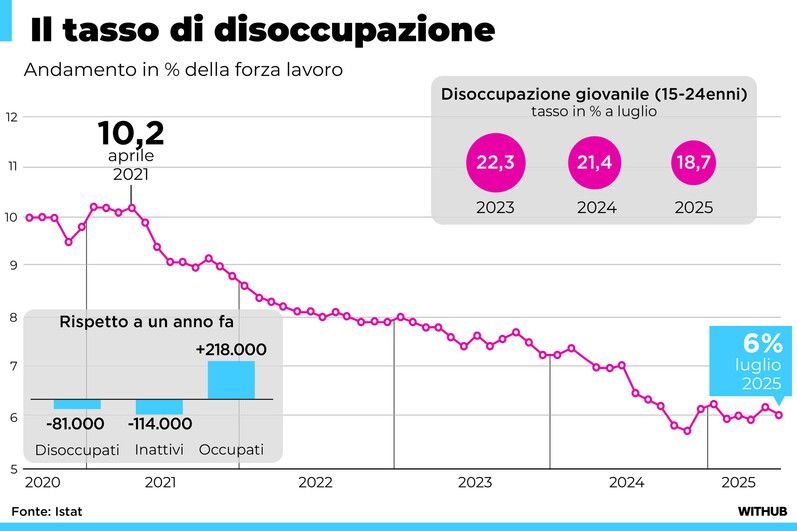 Lavoro, l'andamento del tasso di disoccupazione