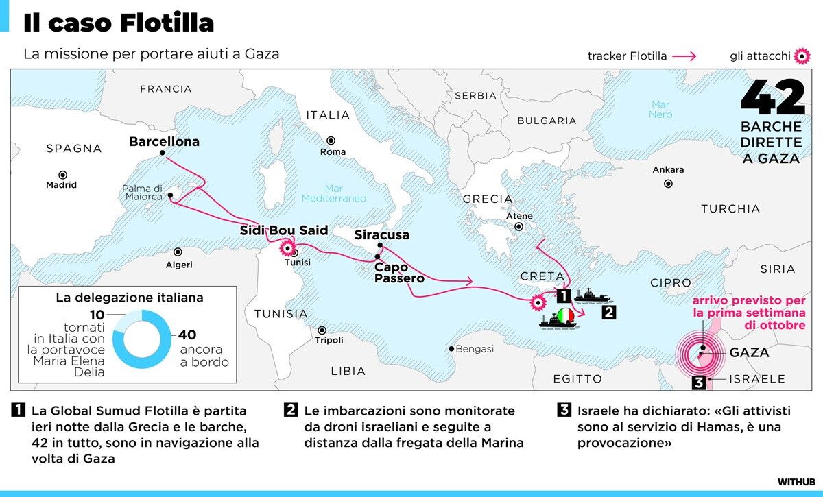 Global Sumud Flotilla, il percorso aggiornato verso Gaza