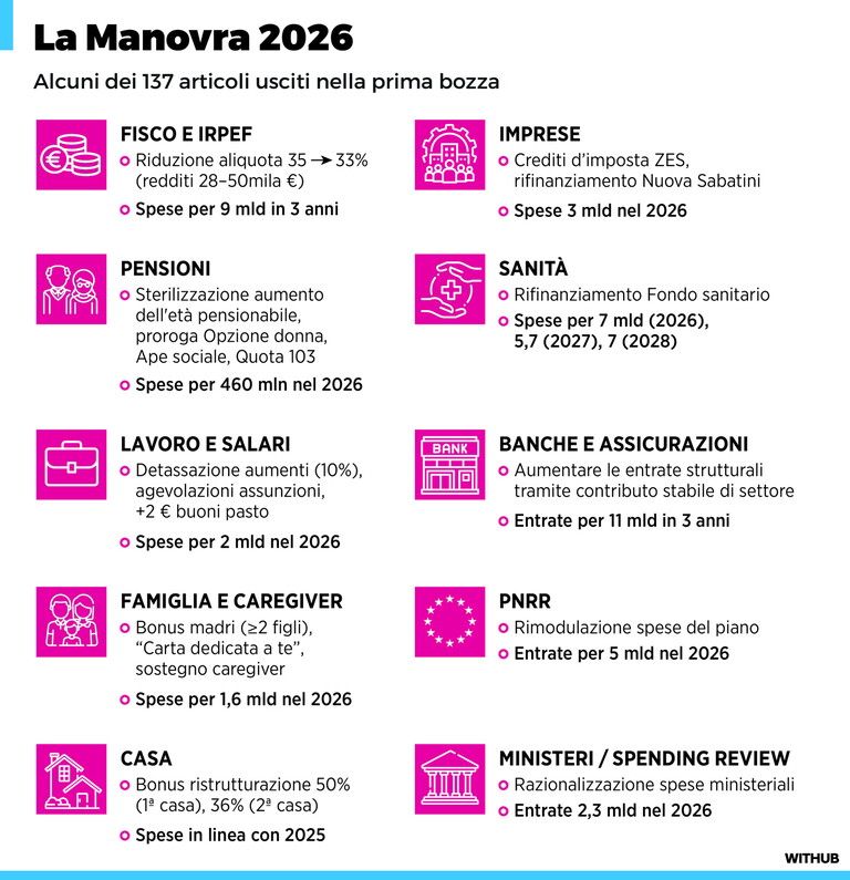 Manovra, le principali misure contenute nella bozza
