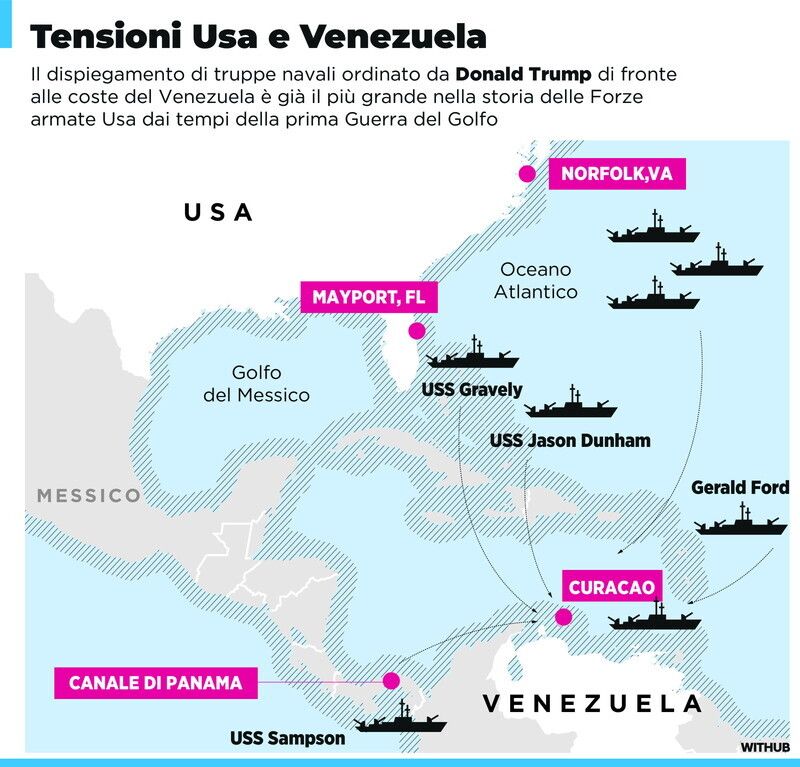 Tensioni Usa-Venezuela, il dispiegamento delle forze navali americane
