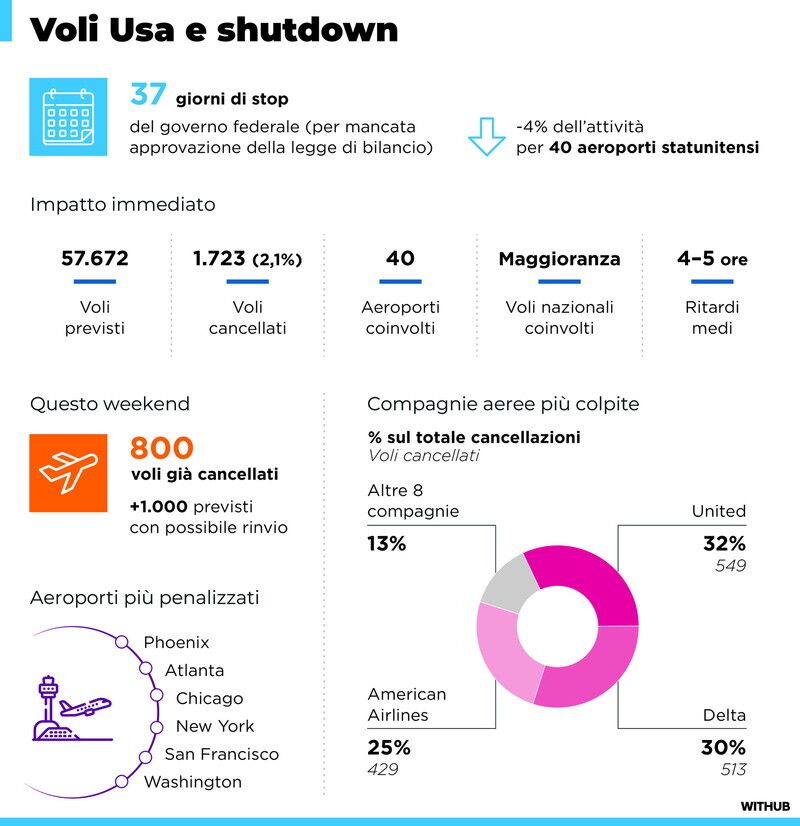 Shutdown negli Usa, l'impatto sugli aeroporti