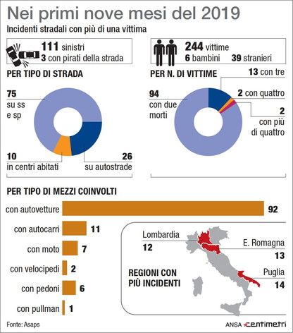 Incidenti, nei primi 9 mesi dell'anno 244 morti