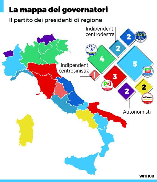Amministrative, i partiti di appartenenza dei presidenti di Regione