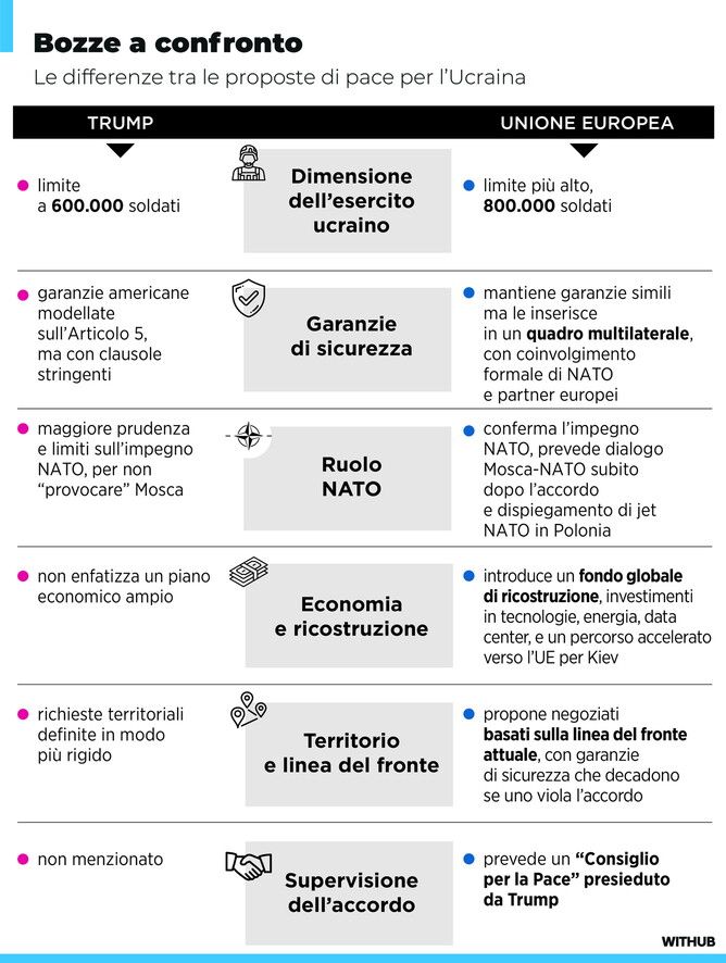 Ucraina, il piano di pace di Trump e quello Ue a confronto