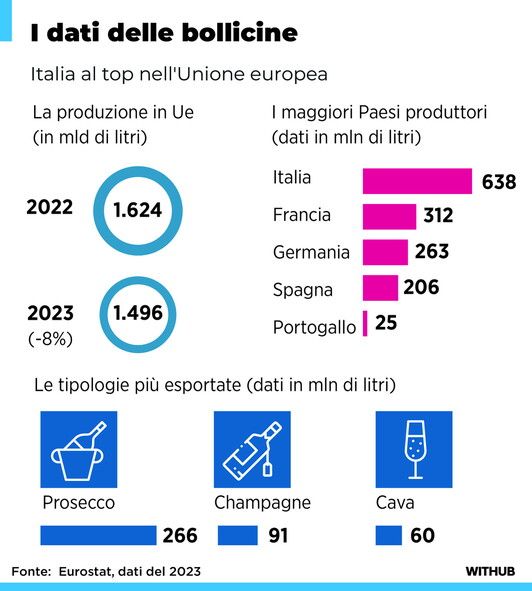 Produzione in calo nell'Ue, Italia e Prosecco al top