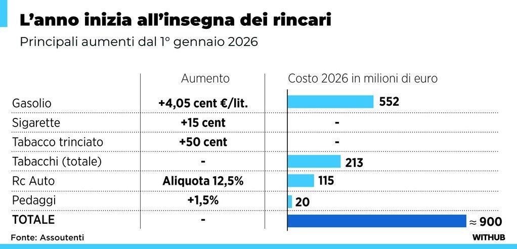 I rincari del 2026: ecco cosa aumenta da oggi
