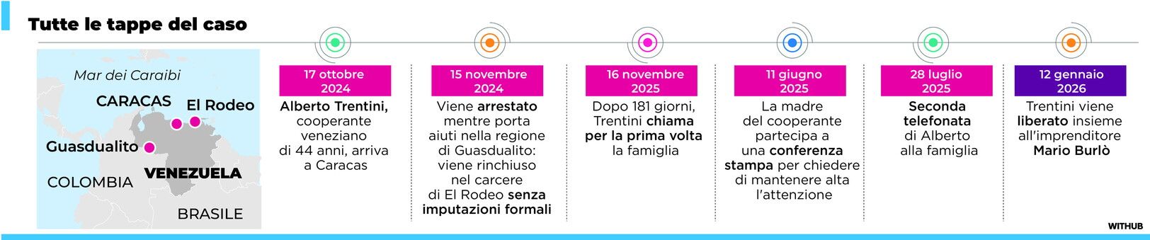 Alberto Trentini, tutte le tappe della carcerazione in Venezuela