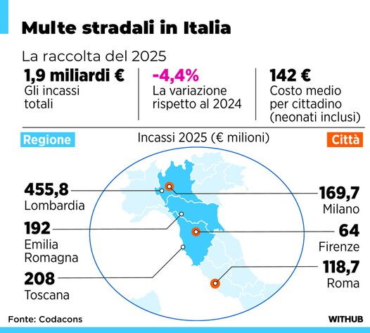 Multe stradali, nel 2025 incassi per quasi 2 miliardi di euro