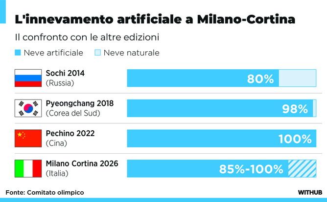 Milano-Cortina, l'innevamento artificiale rispetto alle passate edizioni