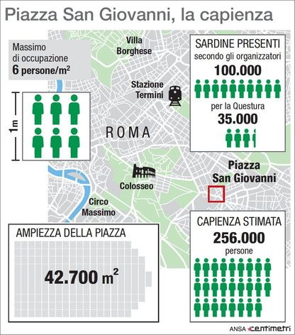 Sardine a Roma, la capienza di Piazza San Giovanni