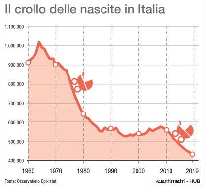 Il crollo delle nascite in Italia dal 1960 a oggi