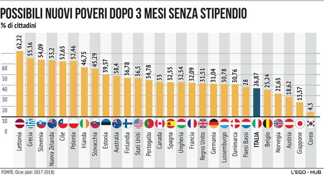 Senza stipendio per 3 mesi, i Paesi a rischio povertà