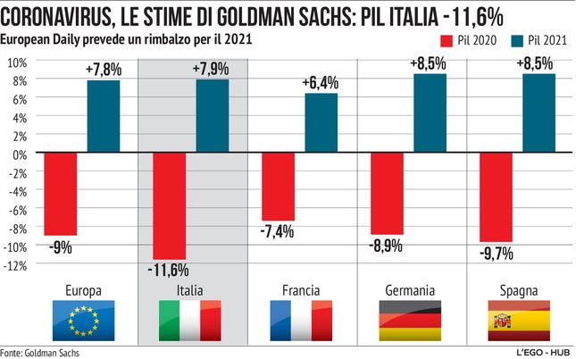 Coronavirus, le stime di Goldman Sachs sui Pil europei