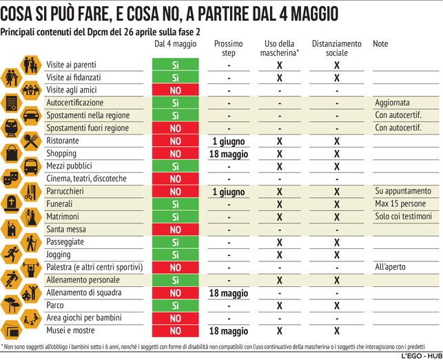 Coronavirus, cosa si può fare e cosa no dal 4 maggio