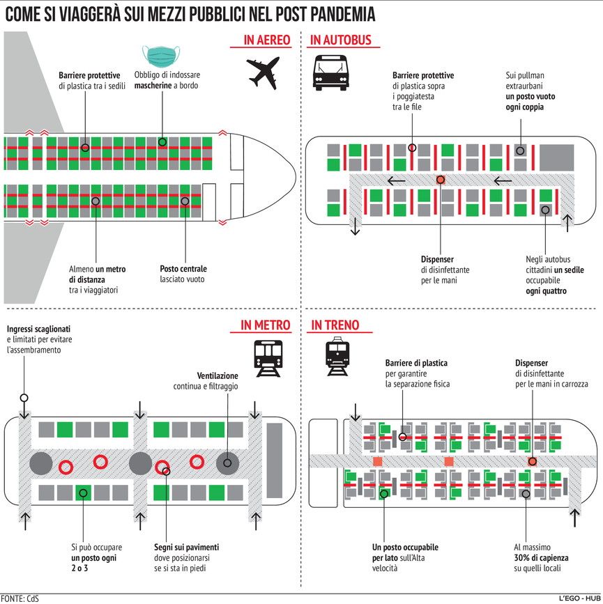 Coronavirus, come si viaggerà sui mezzi pubblici nella fase 2