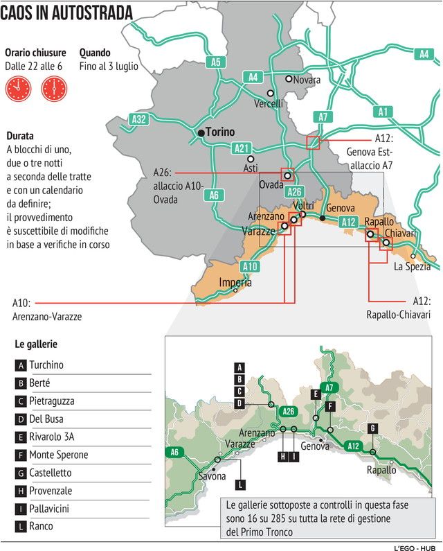 I lavori in corso nelle autostrade liguri
