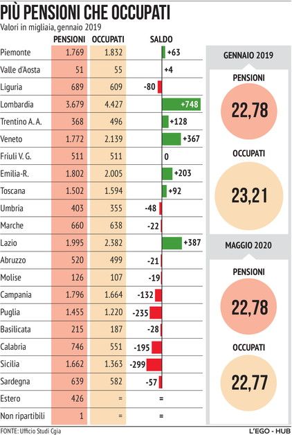 In Italia più pensionati che lavoratori