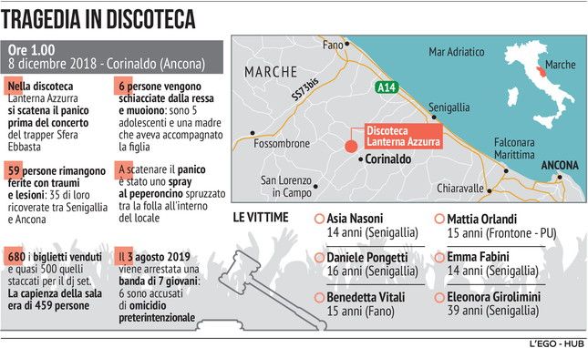Corinaldo, la tragedia in discoteca l'8 dicembre di due anni fa