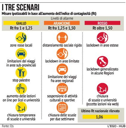 Covid, i tre scenari in base all'aggravarsi dell'indice Rt
