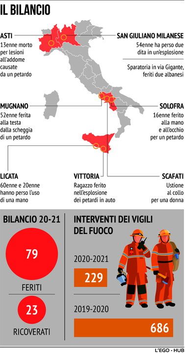 Un morto e 79 feriti, il bilancio dei botti della notte di Capodanno