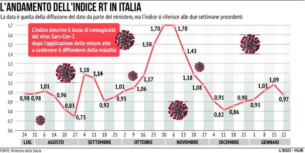 Coronavirus, l'indice Rt aggiornato al 22 gennaio