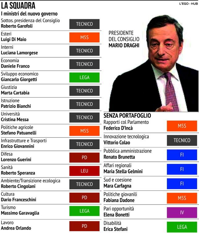 Governo Draghi, ecco la squadra dell'esecutivo