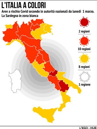 Covid, i nuovi colori dell'Italia dal primo marzo