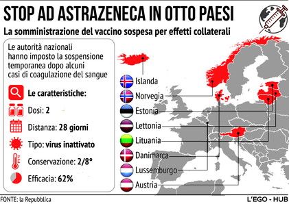 Vaccini ed effetti collaterali, stop ad AstraZeneca in otto Paesi