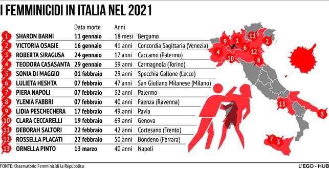 Femminicidi, il 2021 è un anno nero: ecco i numeri da brividi