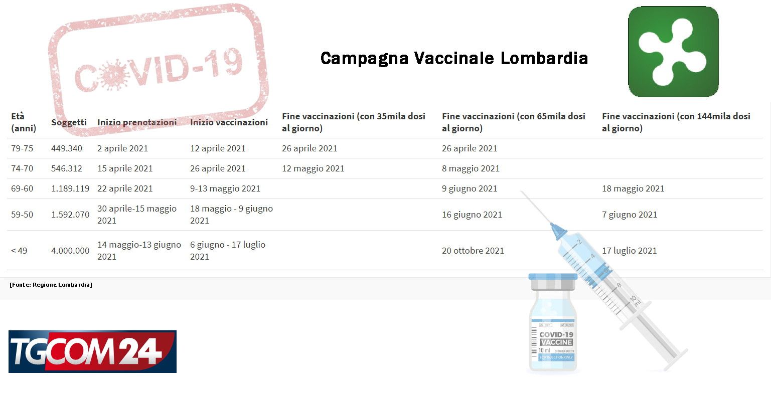 Lombardia, quando sarai vaccinato? Ecco il calendario