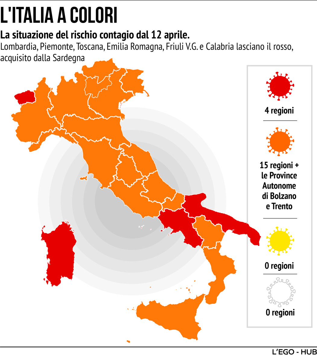 Italia a colori: le zone arancioni e rosse dal 12 aprile