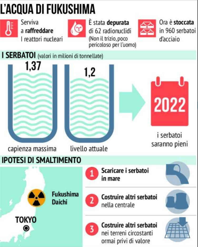 Giappone, l'acqua radioattiva di Fukushima