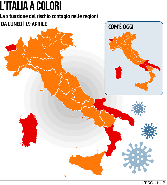 L'Italia a colori, la situazione delle Regioni dal 19 aprile: la Campania passa in arancione