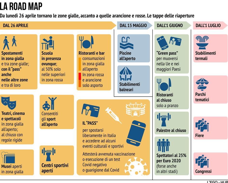 Covid, il calendario delle riaperture dal 26 aprile