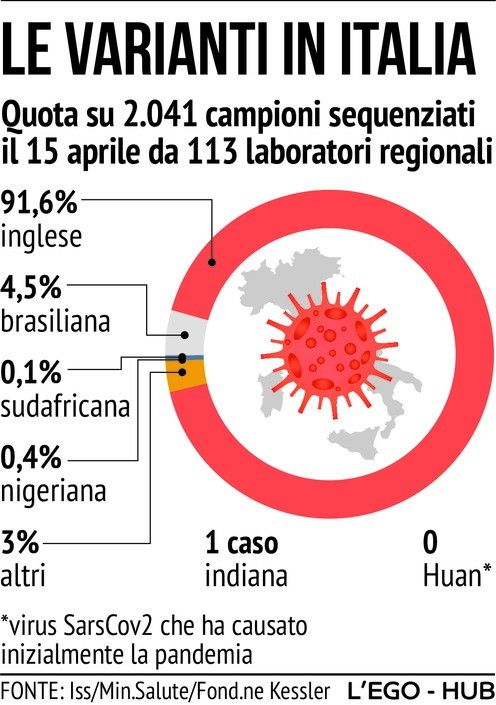 Covid, le "quote" in Italia delle varianti del virus