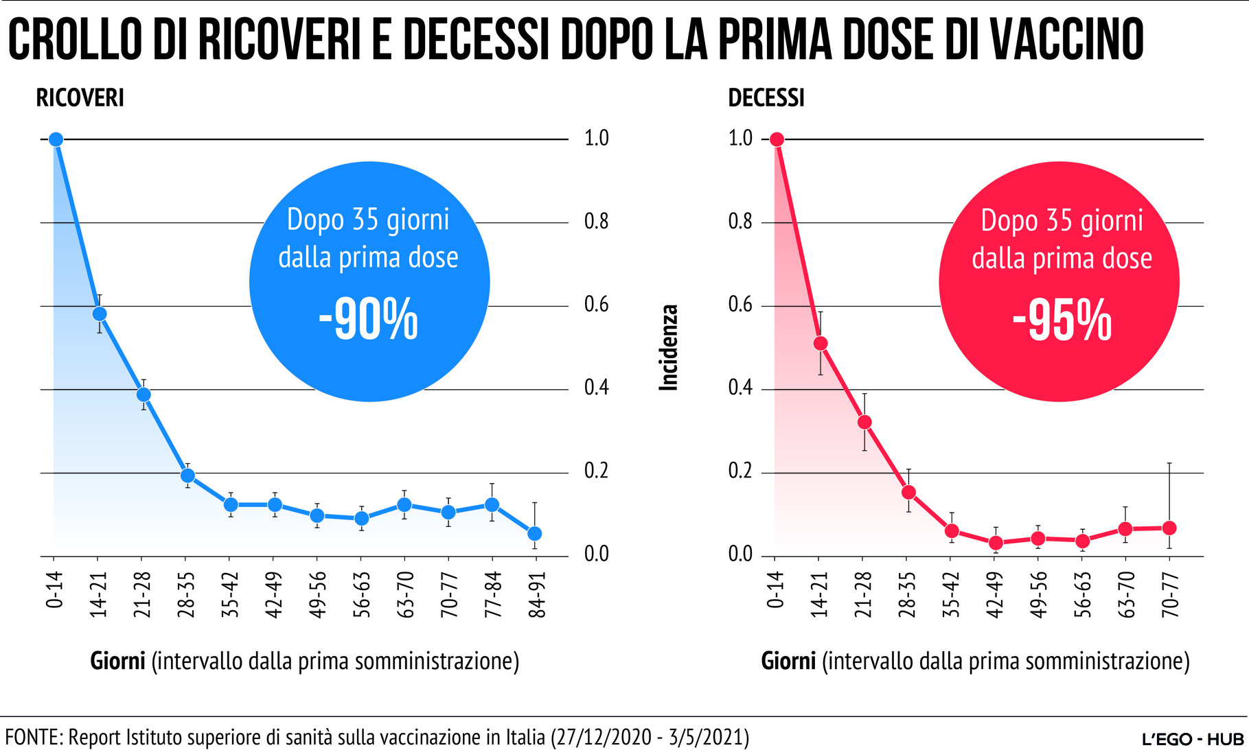 Vaccini, crollano i decessi Covid dopo le prime dosi