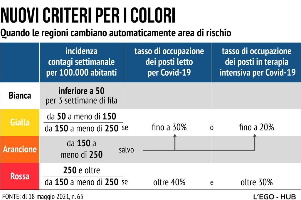 Covid, i nuovi criteri per i colori delle Regioni