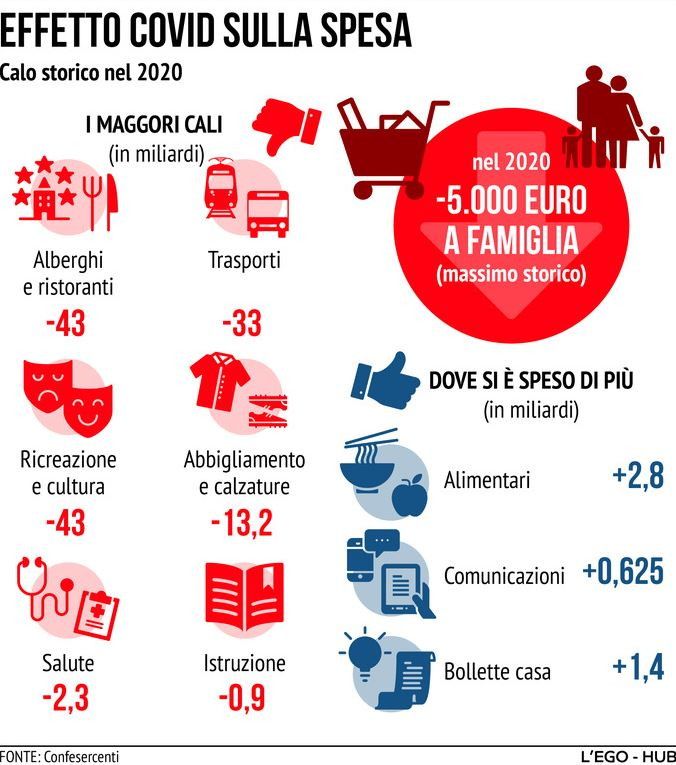 Effetto Covid sulla spesa: -5mila euro a famiglia