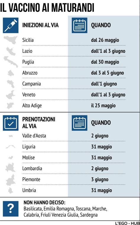 Il vaccino ai maturandi: ecco il calendario Regione per Regione