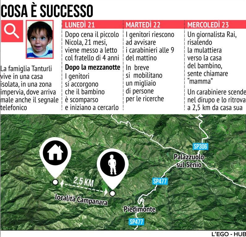 Dalla scomparsa al ritrovamento del piccolo Nicola: ecco cosa è successo