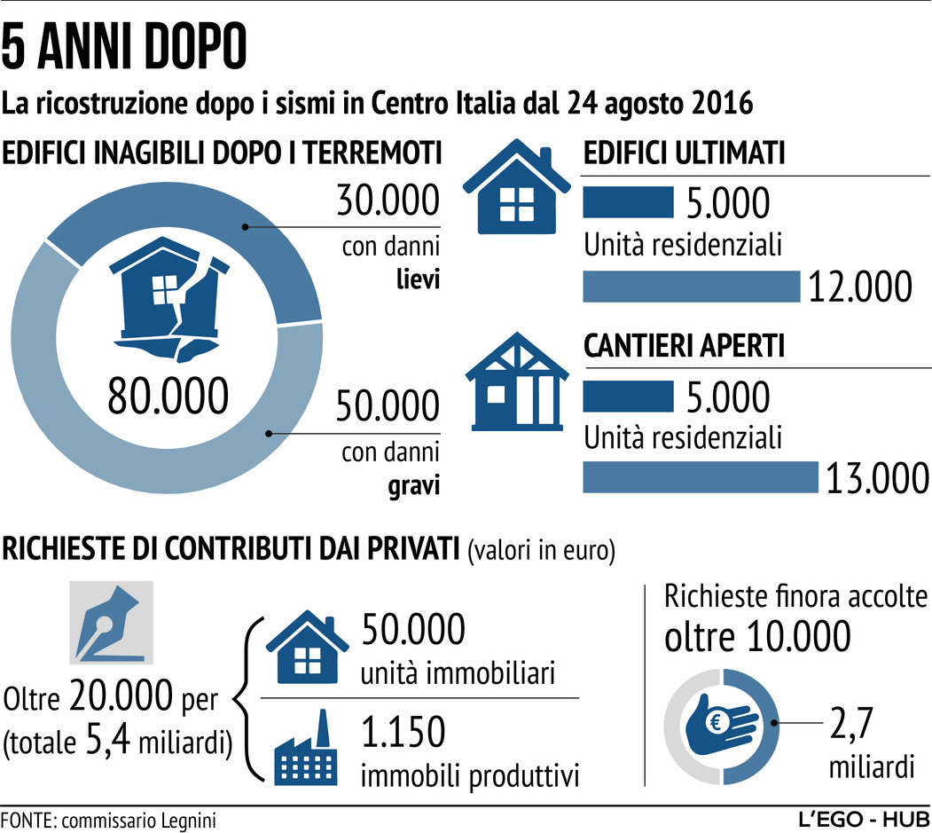 Sisma in Centro Italia, la ricostruzione 5 anni dopo