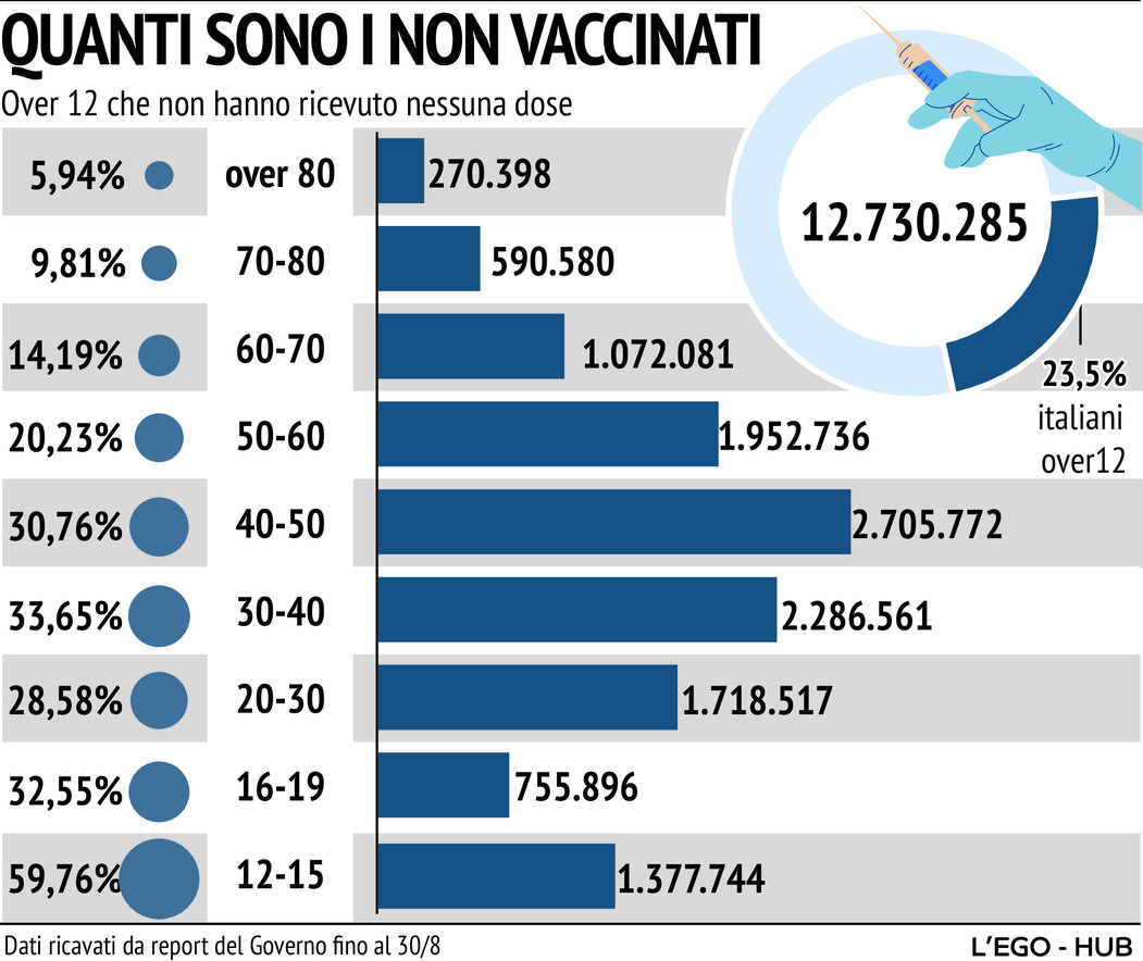 Vaccino anti-Covid, ecco quanti sono gli italiani non immunizzati