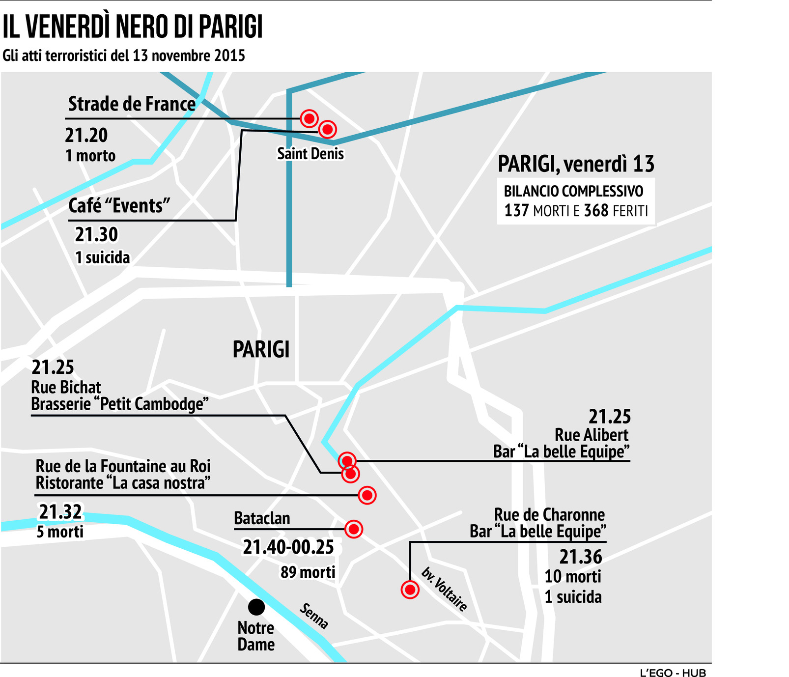 Gli attentati a Parigi il 13 novembre 2015: 137 morti in 7 attacchi