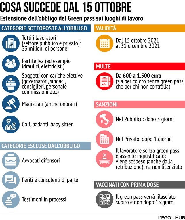 Green pass sul lavoro, cosa succede dal 15 ottobre