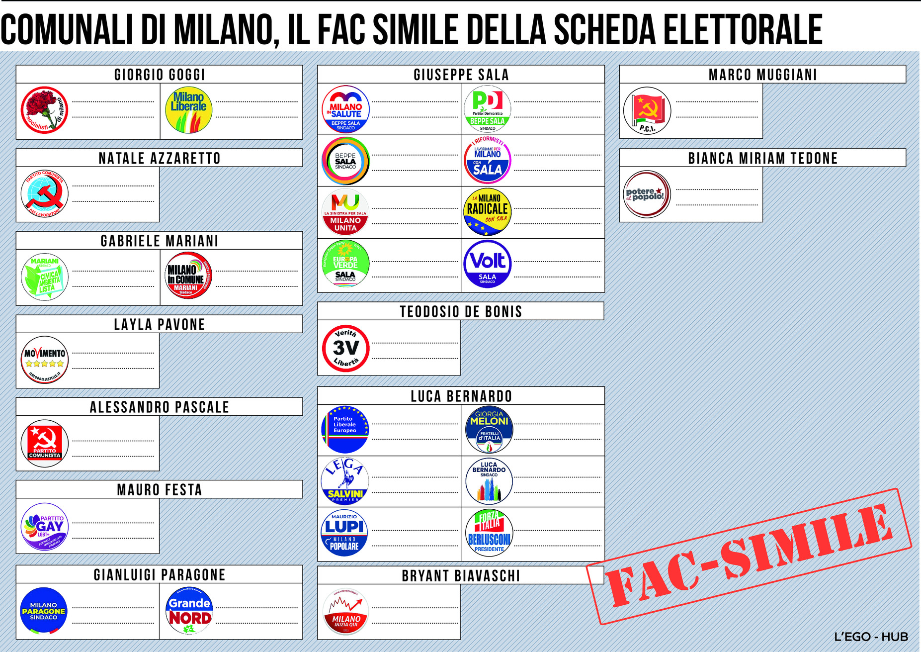 Elezioni comunali a Milano, il fac simile della scheda elettorale